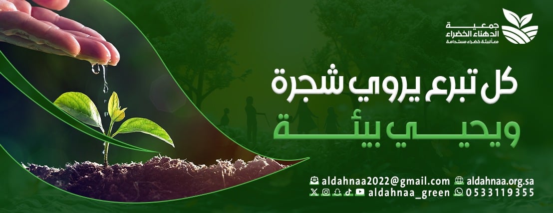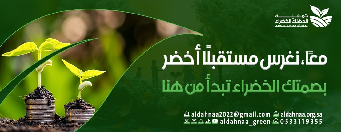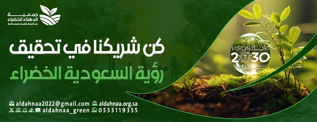 جمعية الدهناء الخضراء، جمعية بيئية أهلية غير ربحية، نعمل بشغف منذ عام 2022م من مدينة الأرطاوية، محافظة المجمعة. نؤمن بأن الحفاظ على بيئتنا هو مسؤولية مشتركة، ولهذا نسعى جاهدين لتنمية الغطاء النباتي وزيادة المساحات الخضراء، انسجامًا مع جهود الدولة ومبادرة